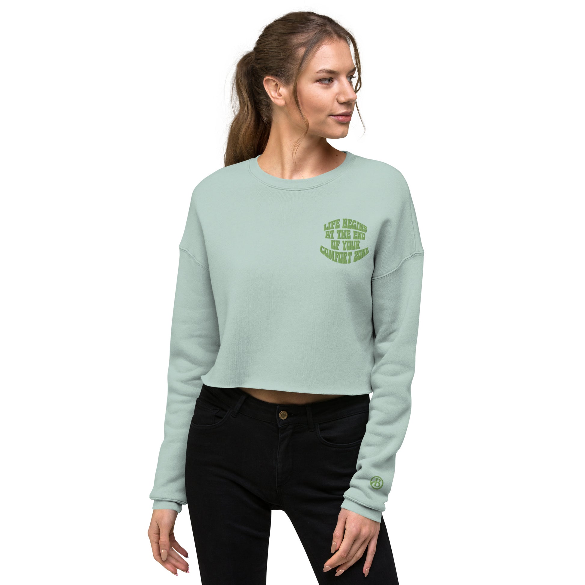 Wear the "Comfort Zone" Cropped Sweatshirt and let it be a symbol of your courage and determination to explore new horizons. Embrace the challenges, savor the growth, and celebrate the beauty of stepping into uncharted territory with B Attitude Apparel.