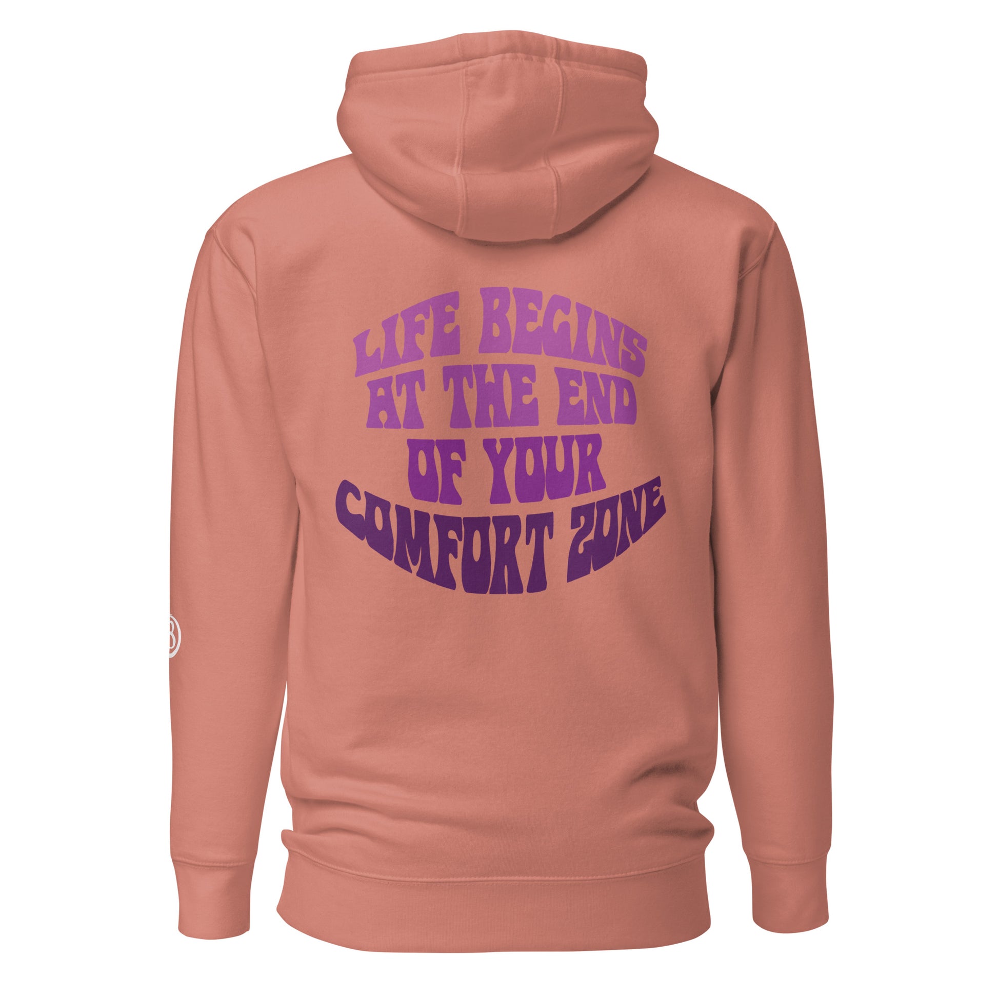 The back of the hoodie features the powerful and inspiring quote, "Life Begins at the End of Your Comfort Zone", printed in bold and contrasting letters. This graphic serves as a reminder to embrace change and challenge yourself to try new things, even when it's uncomfortable or scary.