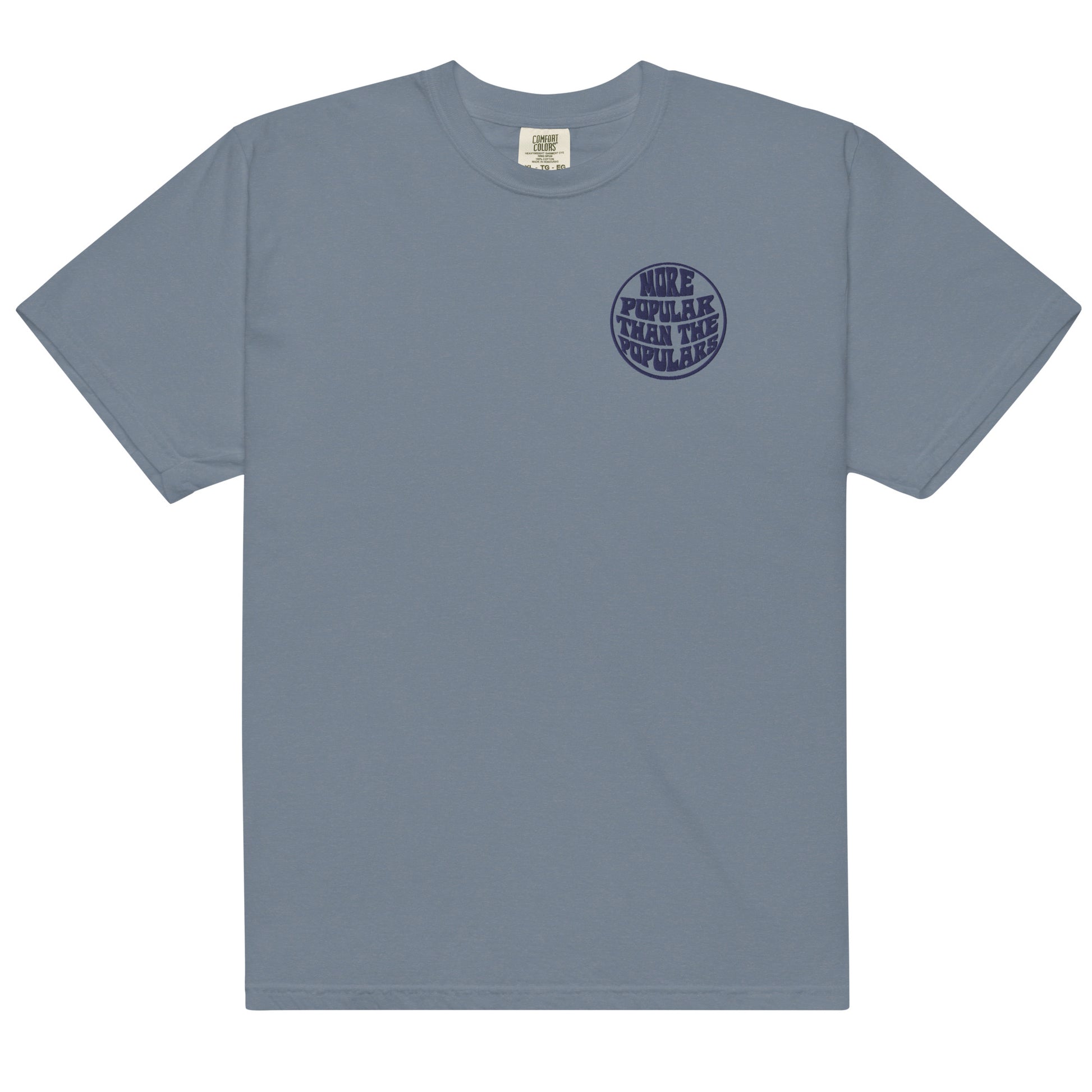 This t-shirt features a simple, minimalist design that showcases the unique texture and color of the garment dye process. The More Popular design is embroidered on the front of the shirt in a bold, contrasting color, while the back features The B Attitude Apparel logo that adds a touch of personality to the design.